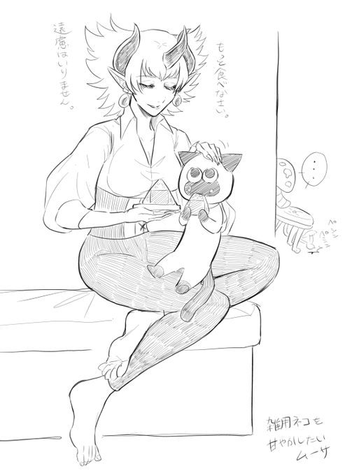 7 10 @PixivF_TL 落書き。雑用ネコのバケツくんを甘やかすムーさんと、それをみている道具達。 22/11/05 18:04