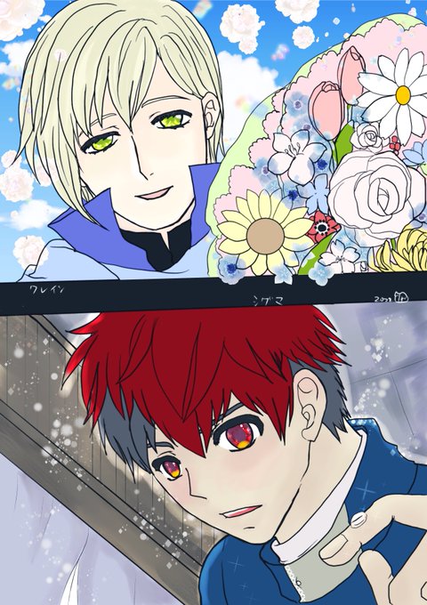 96日目 「おはよう朝から君に逢えるとは、俺はついてるね 今日も最高に可愛いよマドモアゼル」クレイン 「泣くな、お前に泣かれたら俺どうしたらいいかわかんねぇよ だから笑えよいつもみたいに笑顔みたいんだよ」シグマ #100日チャレンジ #一次創作 #創作男女 #illustration