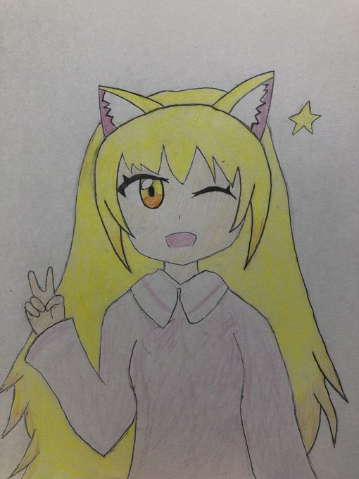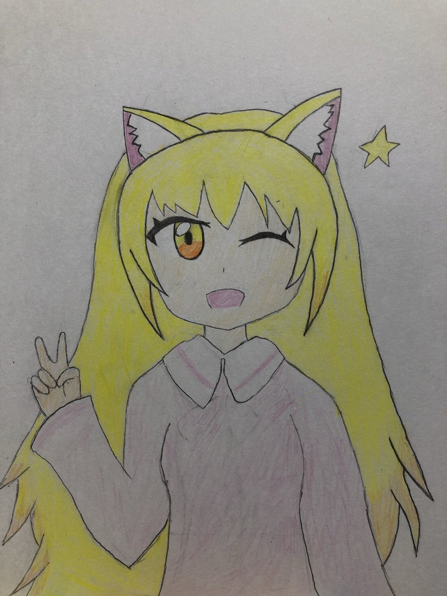 描いてたら金髪猫耳少女になりました #猫の日 #イラスト