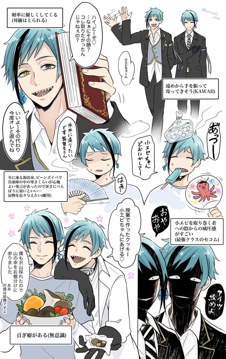 #みんなのマジカメが見たい / #twstプラス の続き 「海にはこんなのなかったしぃ、イマイチ使い方わかんねぇの。…だからぁ、小エビちゃんがオレに教えてよ。いいでしょ?それが対価でいいからさ〜。アハッ、なーに怯えてんの?ビクビクしちゃってかわいーねぇ小エビちゃん♡」