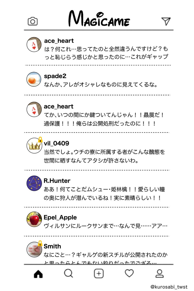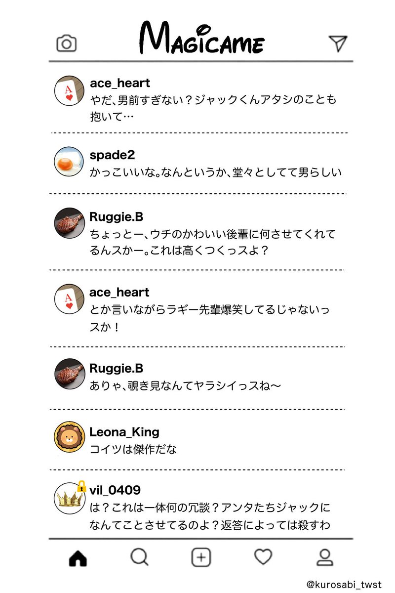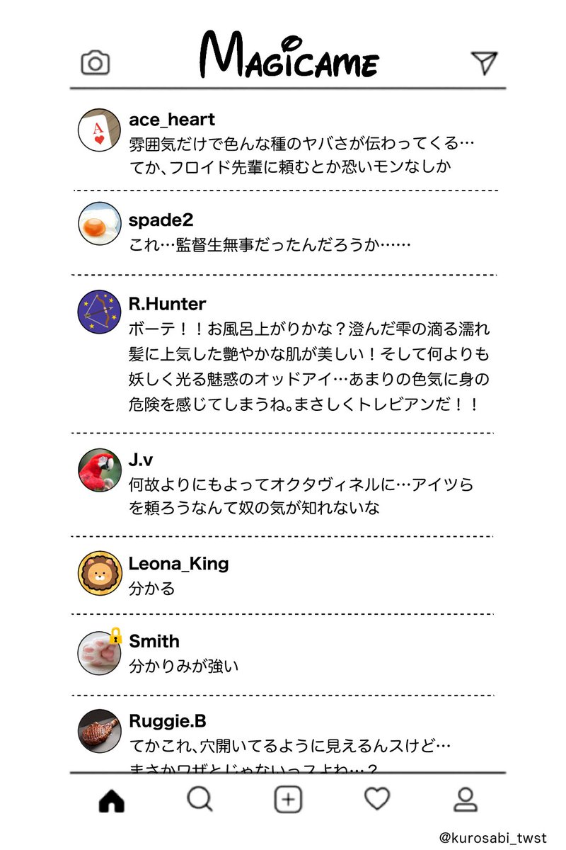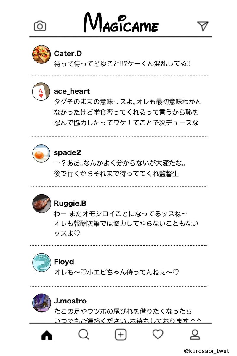 #みんなのマジカメが見たい / #twstプラス 続き 🐺はマジカメアカウント持ってても普段ほとんど見てなさそう。でも情報はエース達から仕入れているからすぐに駆けつけてくれる。トモダチ認定されたい…