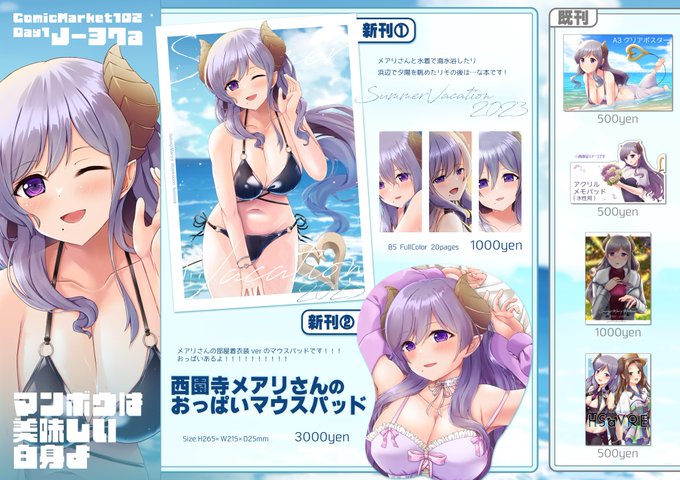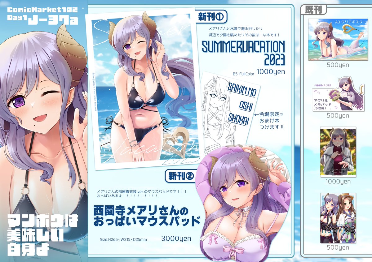 あなたのサークル「マンボウは美味しい白身よ」は、コミックマーケット102で「土曜日 東地区 “J” ブロック 37a」に配置されました! webcatalog.circle.ms/Circle/Map/173… #C102WebCatalog 今年もスペース頂けました!今年はメアリさんの水着本とおっぱいマウスパッドを予定してます!よろしくお願い致します!!