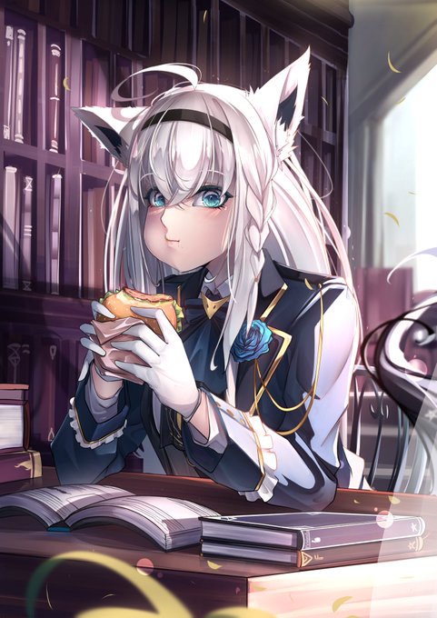 Nomnomnomnomnom- ah! 🦊🍔 #絵フブキ