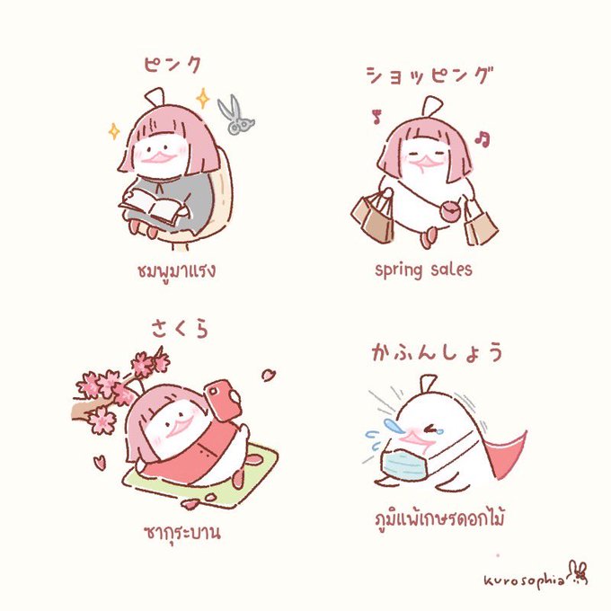 春あるある🌸 เมื่อพูดถึงฤดูใบไม้ผลิของญี่ปุ่น...😷 #イラスト #ゆるいイラスト #かわいい #illustration #โฮมุ้monthly #春