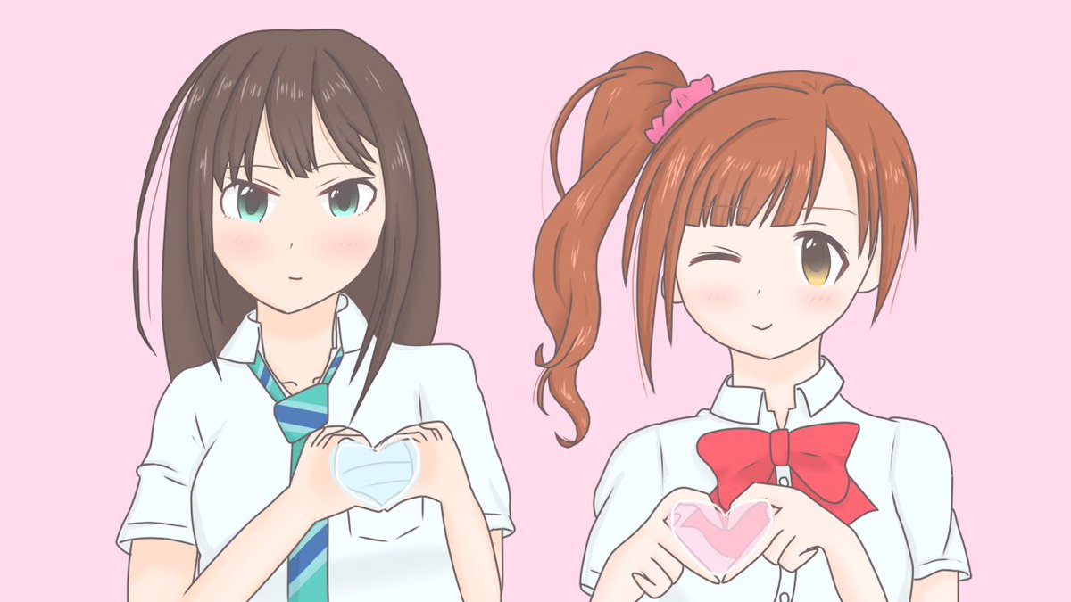 凛ちゃん、響子ちゃん誕生日おめでとう! ハートの日らしいからハートポーズして欲しいなって #渋谷凛生誕祭2020 #五十嵐響子生誕祭2020