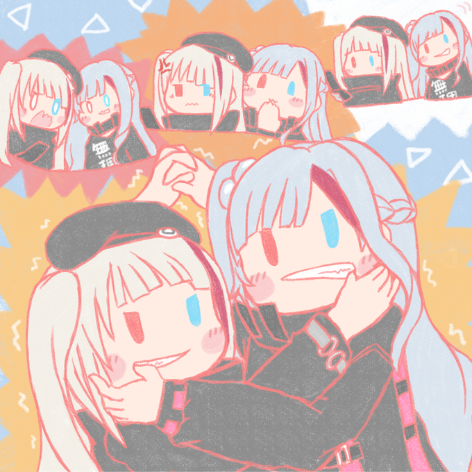 煽り合って取っ組み合いになってるドールズフロントラインのMDRとニューラルクラウドのクロを描いたー(skeb依頼ありがとうございました) 時空を越えたレスバ(物理)! #ドルフロ #ニューラルクラウド