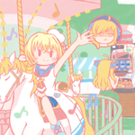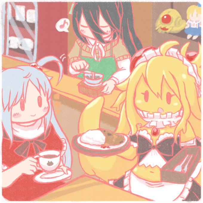 ショッピングモールのゲームコーナーのメリーゴーランドにドヤ顔で乗るリエール様とスロットを打つ邪神ちゃんを描いたー(skeb依頼ありがとうございました) 邪神ちゃんは大当たりしてるけど結局換金できないので虚無ってます #邪神ちゃんドロップキック