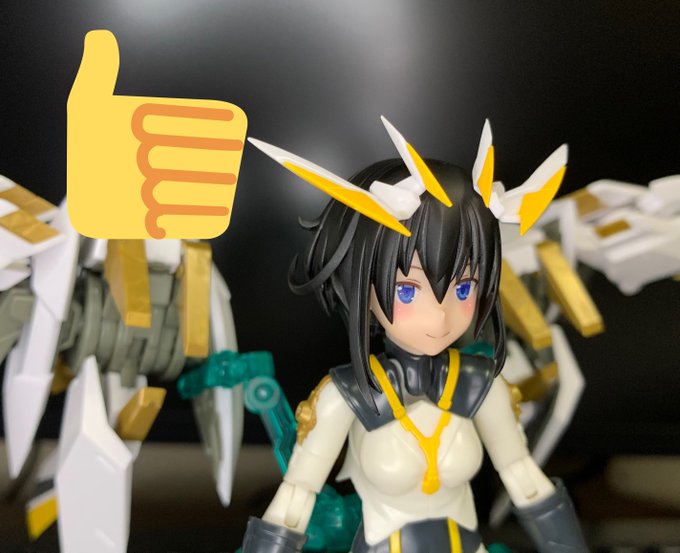 2 2 シタラちゃん、組めました…!大変だった…でも充実感半端ないね。これぞ長期休暇って感じよ… 隣の綾鷹はサイズ比較用。いやいやデカイデカイ!! #アリスギア #メガミデバイス 21/05/05 22:39