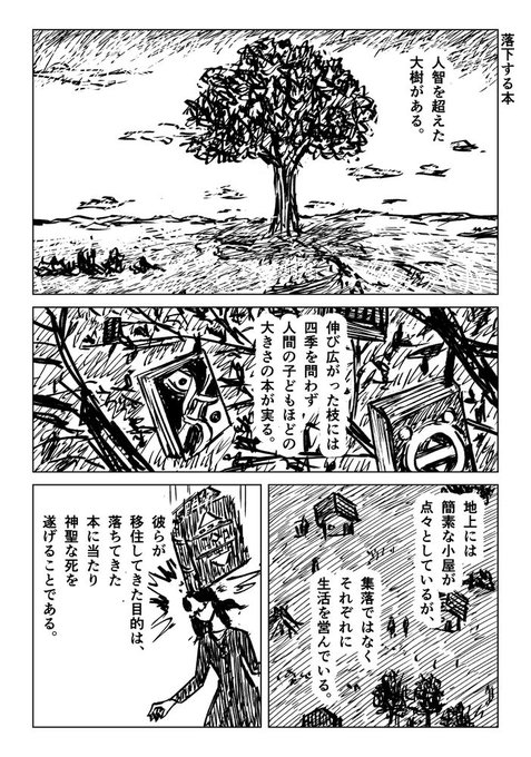 1ページ漫画「落下する本」#漫画が読めるハッシュタグ