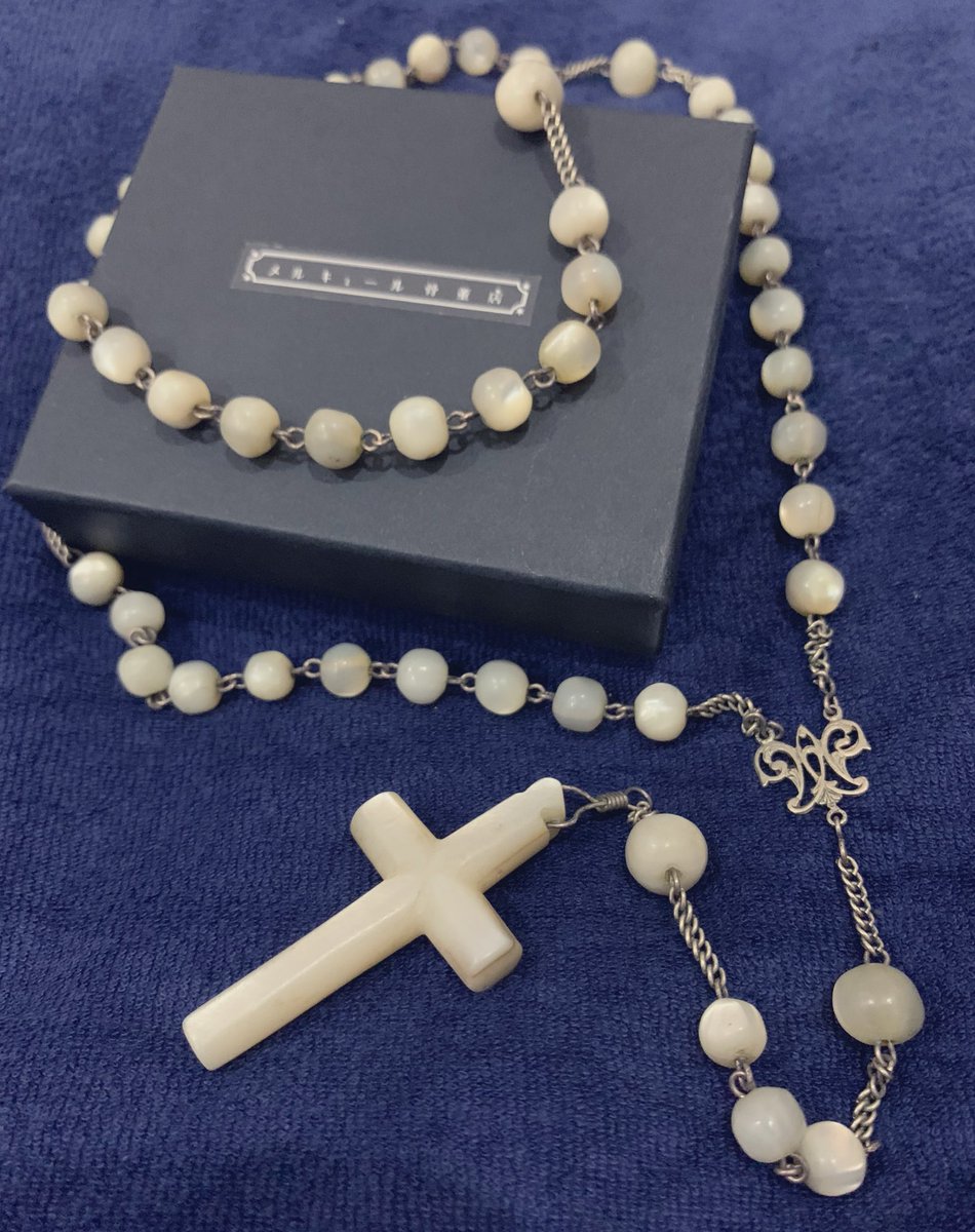 7 119 先日、自分への誕生日プレゼントとしてメルキュール骨董店さんよりお迎えした真珠貝のロザリオ 珠もクロスも真珠貝で、手触りがすごく滑らか…!シンプルだけどとても美しく、素敵なものをお迎えできて嬉しいです。 20/08/14 22:40