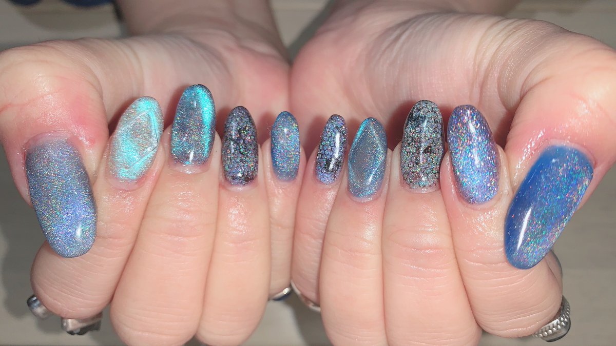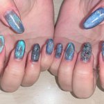 13 79 新しいネイル💅🏻 青!水色!マグネット!フィルム!ラメ!キラキラ!💎✨ ポイントはシラーが割とバシバシめなラブラドライト盛り シアーめ&ツヤ増し増し!涼しげでかわいいはず! 22/07/05 21:21