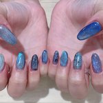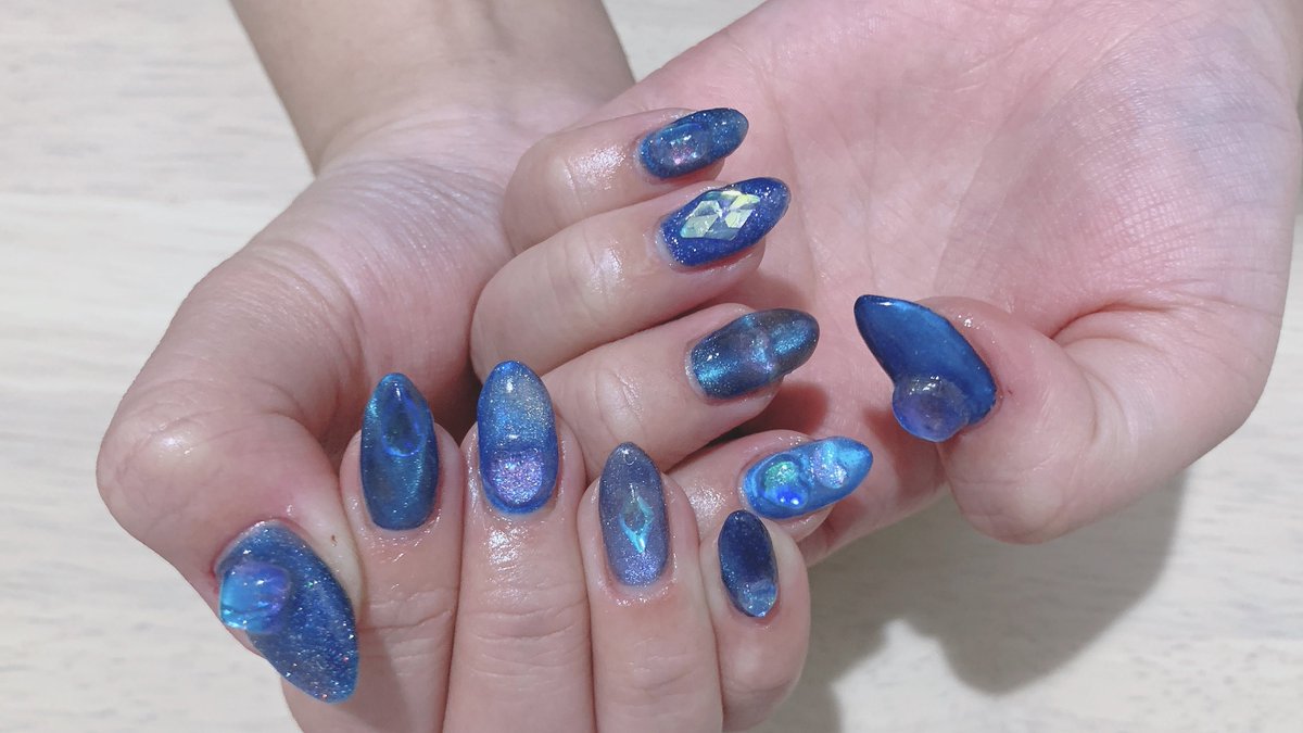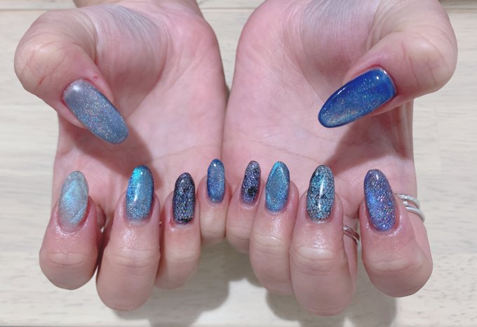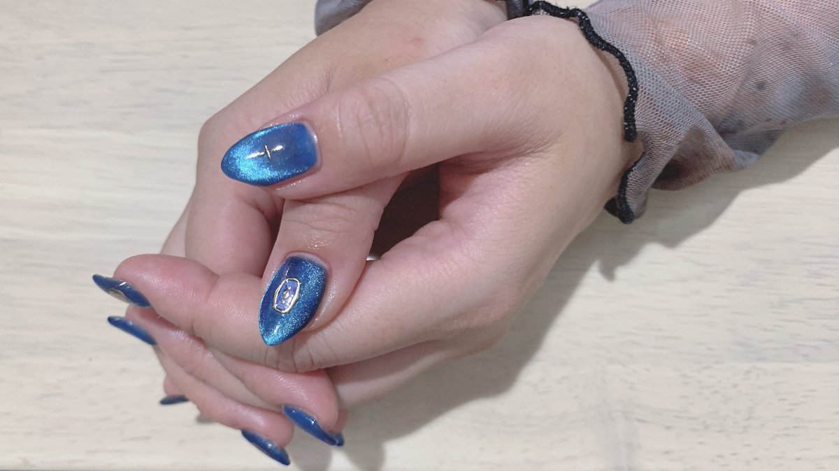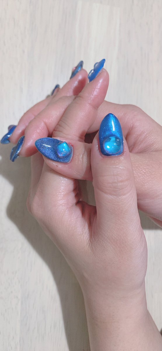 新しいネイル💅🏻 ベースカラーもマグネットも青!!!!!!!!!!!キラキラ!!!!!!!かわいい!!!!!!以上です!!!!!!!