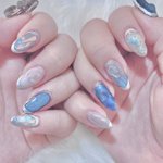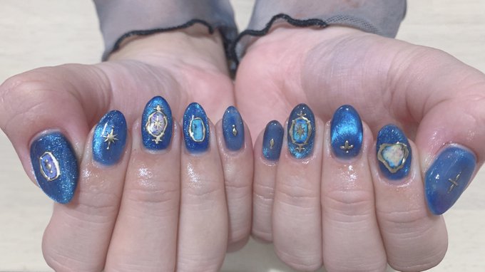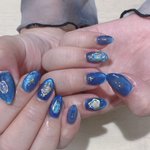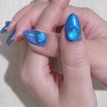 新しいネイル💅🏻 今回はまた青とキラキラ💎🦋🔹💠💙🧊🔷とてもよく見る色合い 推しのイベント近いので新しくしたけどホリ譚に向けてまたネイルかえるつもりなのでおそらく短い命です 半分寝ながら仕上げてたので諸々あやしい
