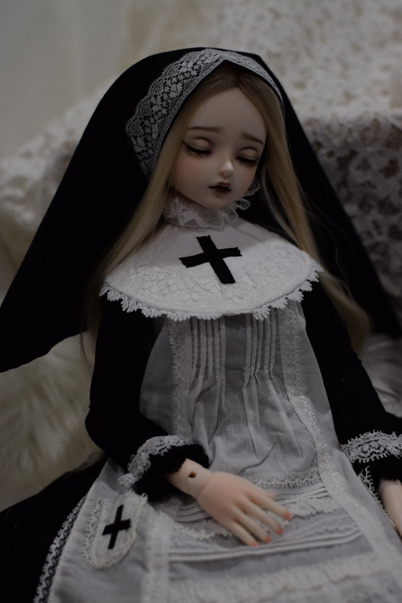 Myou DollのDeliaSPちゃんお迎えしました!5月に注文していつ来るかわからなかったけど、無事届いてよかった メイクも綺麗だしお洋服も可愛い… 私のコレクションの中で一番この子に似合う、メルキュール骨董店さんからお迎えしたオパールセントのロザリオを添えて。