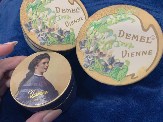 デメルのすみれの砂糖漬け大好きだけどこの紙箱がもう存在しないの悲しすぎるんだよな ゲルストナーのも好きです