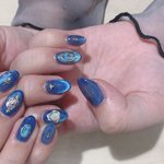 10 64 新しいネイル💅🏻 今回はまた青とキラキラ💎🦋🔹💠💙🧊🔷とてもよく見る色合い 推しのイベント近いので新しくしたけどホリ譚に向けてまたネイルかえるつもりなのでおそらく短い命です 半分寝ながら仕上げてたので諸々あやしい 23/03/21 22:24
