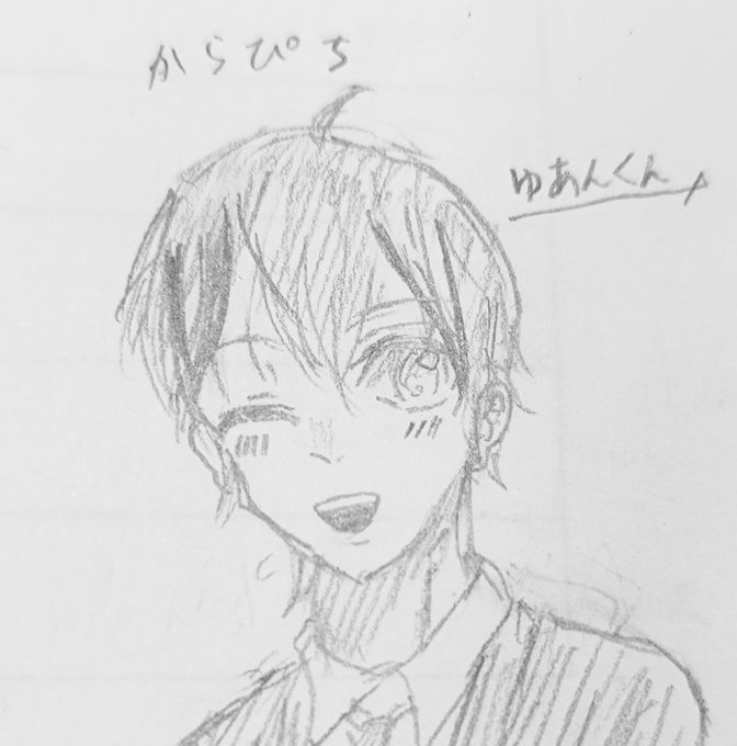 塾暇だったから、予想でゆあんくん描いてみた。画像と比べたら、全然違ったw 暖かい目で見てください(_ _;) #からぴち #ゆあんくん