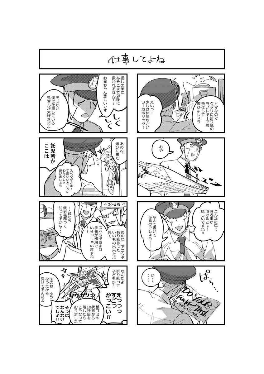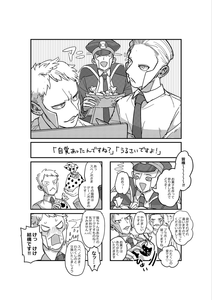 【2/25〜26 GSA2 展示サンプル】 ギアステ・ア・デイ (クダノボA;き1) 表紙込み10P※追加予定! 全年齢ギャグ本です! バトル業務以外のGAS〼がわちゃついています。楽しそうなA〼がたくさん!クダノボ成分はうっす〜いです。初参加で緊張しますがよろしくお願いします! 5月に本も出します! twitter.com/kuruko_/status…