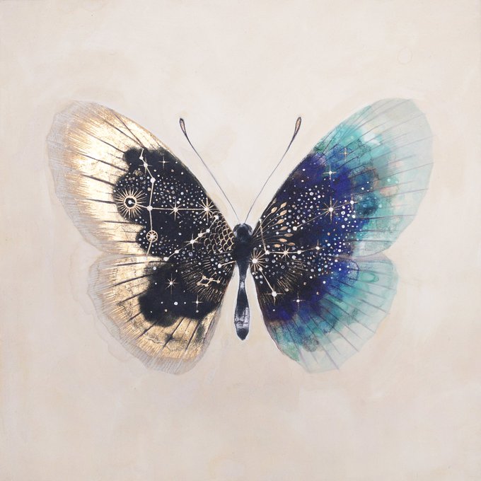 今年描いた蝶を集めてみました。これに加えて3点、全部で9点。 まだあと2点は個展で展示中ですが、すべて私のもとから旅立つ事になりました。それぞれの場所で生活をちょっと華やかにするような、そんな存在になってくれたら良いなと思います。ありがとうございました🦋✨ #日本画 #japanesepainting