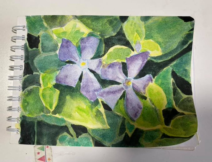 1 7 つるにちにちそう ネガティブペインティングの練習だったのだが、『ドラマチックとうめい水彩 あでやかに花を描く』みたいなノリになってしまった。 ダーウェントのインクテンスを下塗りに使うと乾いた後は溶けないの良いのだが。 気が付くと最後まで、ダーウェントで塗っている・・・ #水彩 21/05/14 08:11