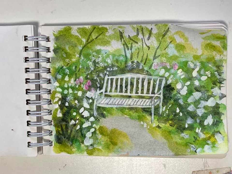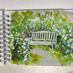 #リベンジしてみたシリーズ。ベンチを練習してからまた描いてみました。#横浜イングリッシュガーデン #水彩画 #ダーウェント #胡粉ジェッソ