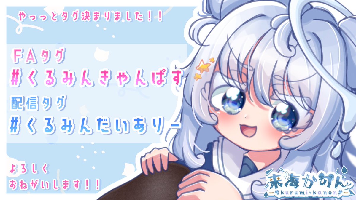 🍭💙💙【お知らせ】💙💙🍭 やっっっっと❕ファンアート&配信用の タグが決まりました❕❕❕❕❕❕ FA用▶︎ #くるみんきゃんぱす 配信用▶︎ #くるみんだいありー よろしくおねがいします❕❕🫶🏻💙🍭 #歌い手さんMIX師さん絵師さん動画師さんPさんと繋がりたい