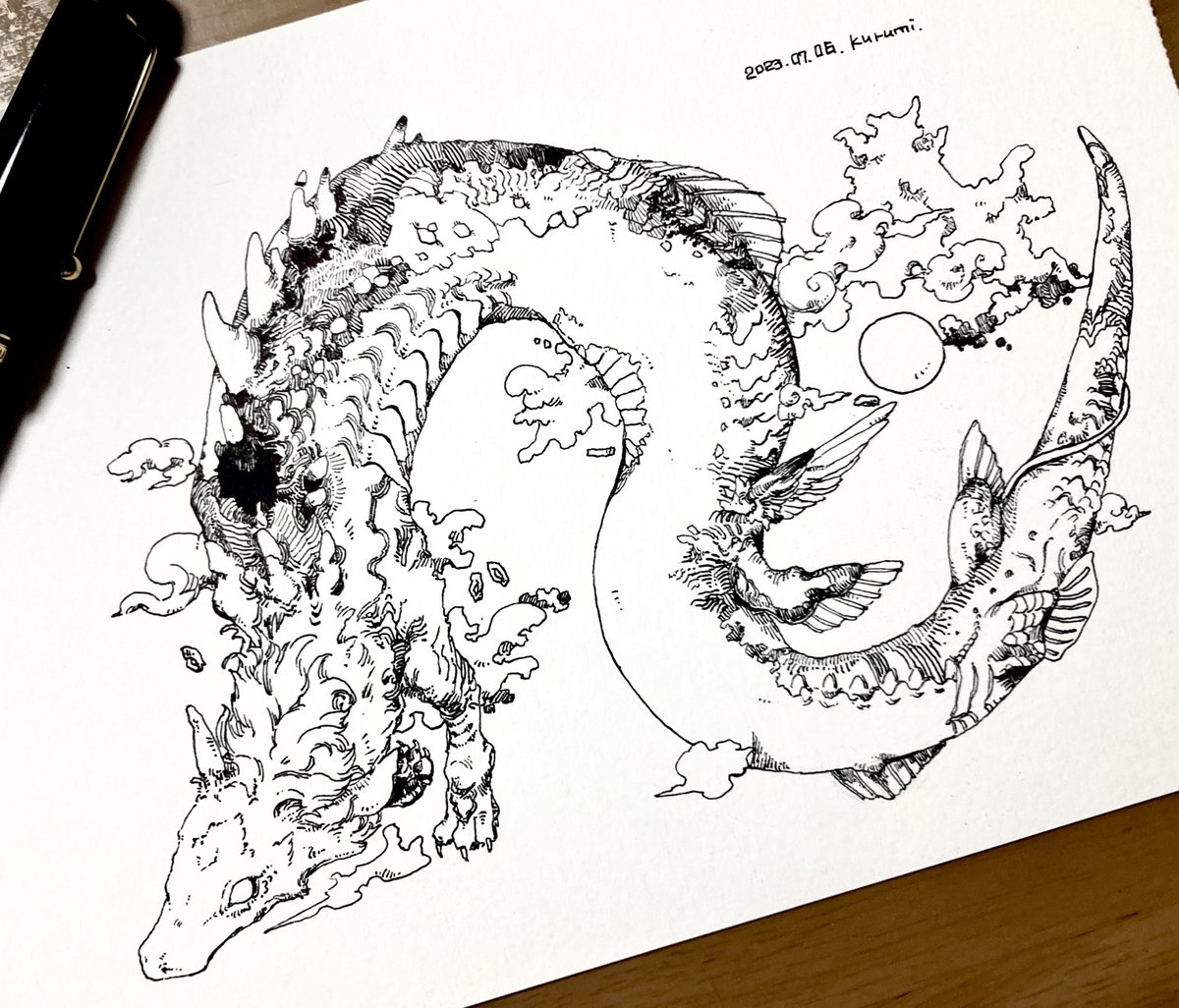 25 229 竜 #ペン画 #イラスト #アナログ #万年筆ま 23/07/06 20:01