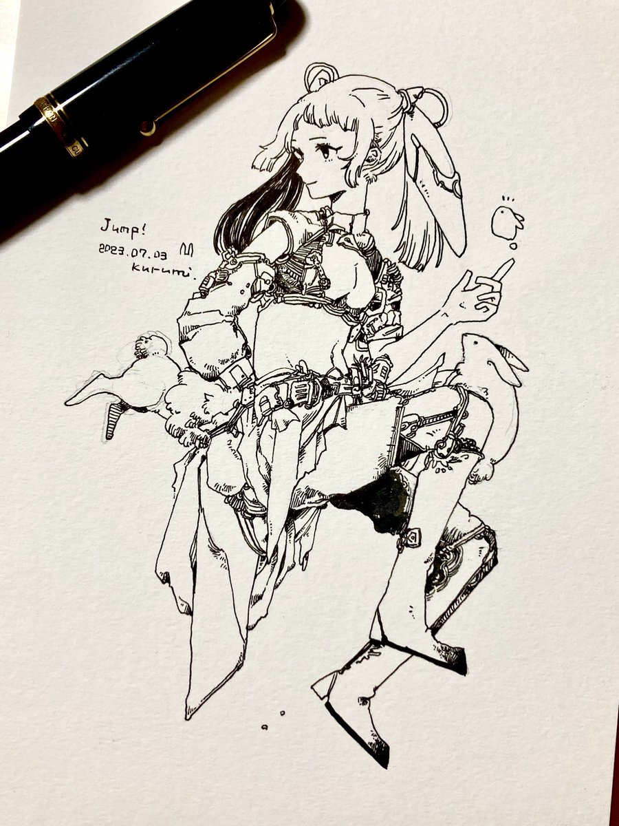 13 234 ジャンプ! #ペン画 #アナログ #イラスト 23/07/07 20:01