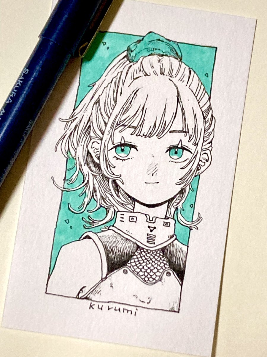 ウルフヘアの女の子 ミニ原画 #ペン画 #イラスト #アナログイラスト