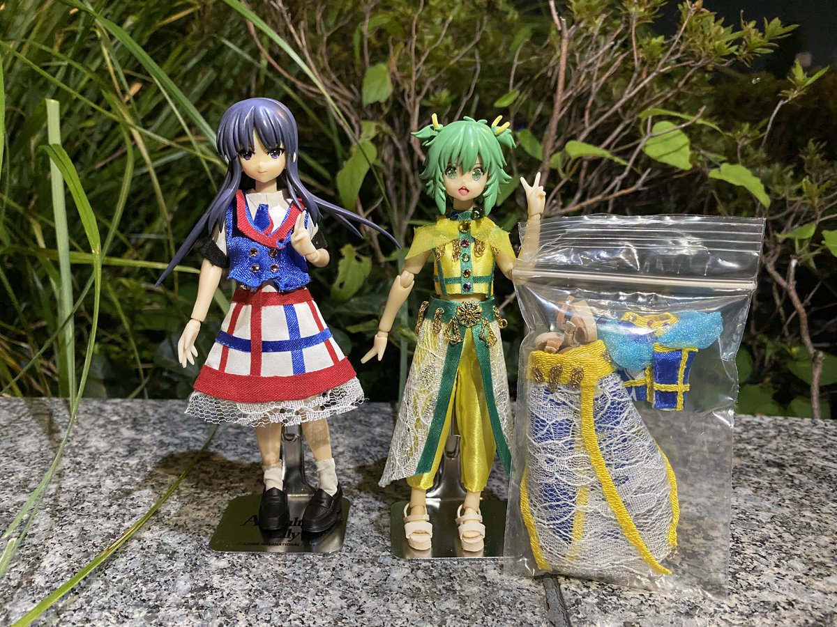 フォロワー様へのプレゼント用に「ましゅまいれっしゅ!!」ほわん・マシマヒメコの衣装を制作しました 夢結さまと雨嘉さんのドールはフォロワー様のをお借りして撮影してます #アサルトリリィドール部