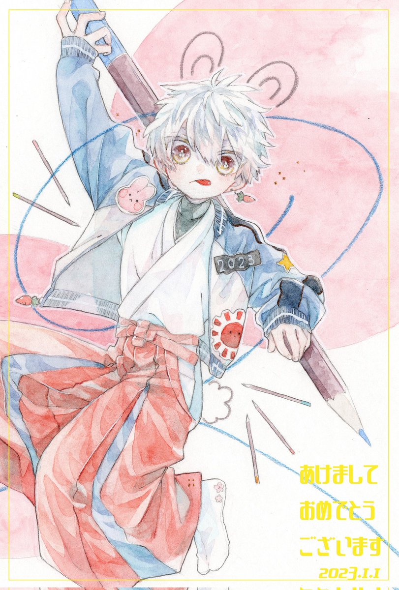 # フォロワーさんの好きな要素を詰め込んだ創作男子を描く 遅くなりました…!3人目! ケモ耳・可愛いヘアピンが沢山ついてる・メイド服・ツノ