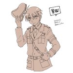 軍服らくがき iPad練習 液タブと板タブをお互い練習している友達 @ebibinba とリクエスト交換で軍服絵。友人創作キャラ、ジャスト君です。ワンドロで塗りまで行けなかった…ごめん!
