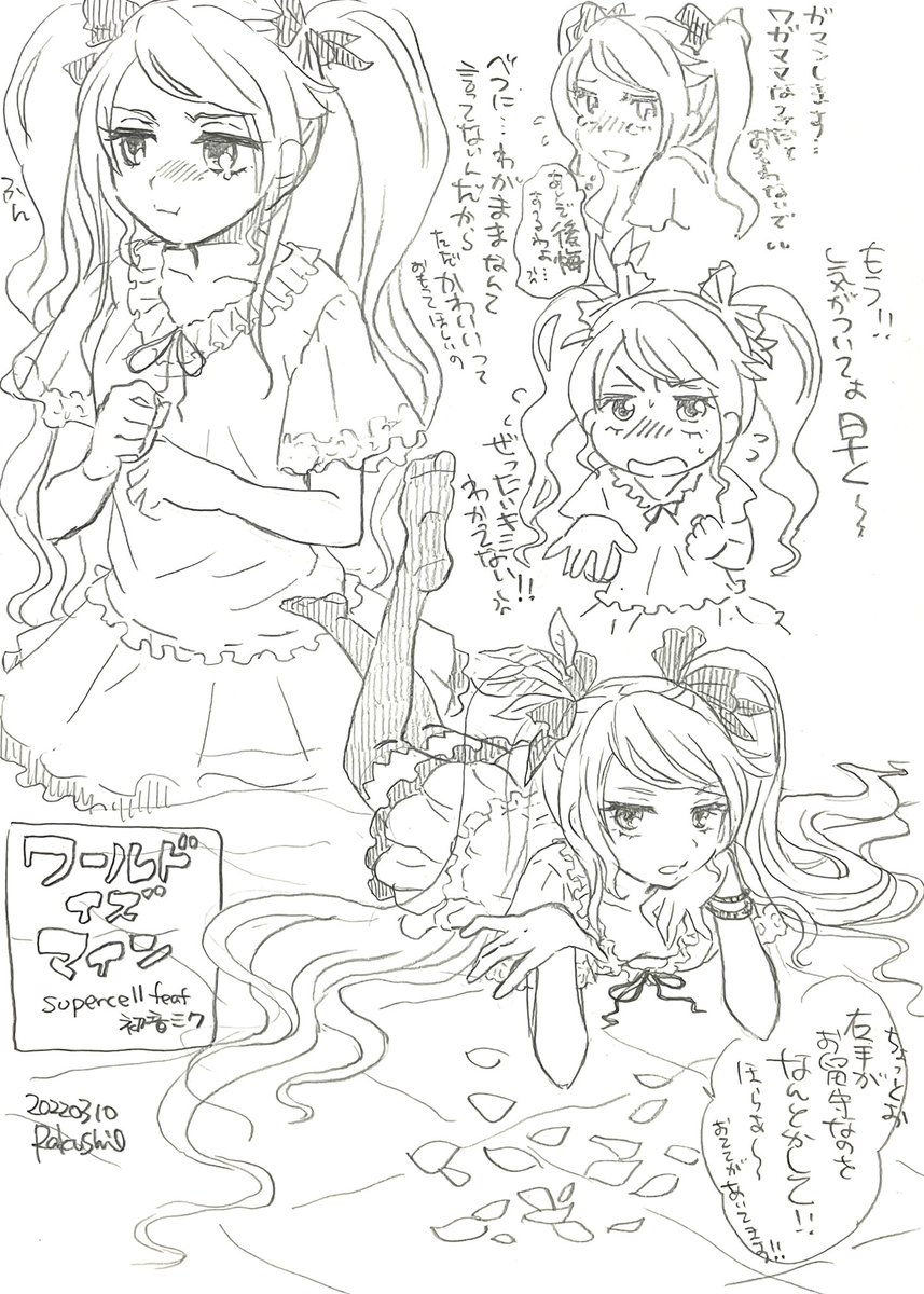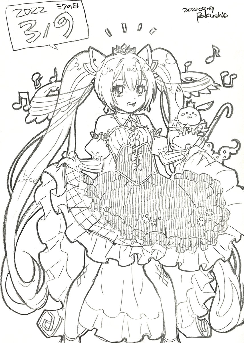 3 25 鉛筆らくがき ワールドイズマインのお姫さまミクちゃんです #ミクの日 22/03/10 21:48