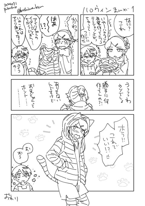 4 12 ハロウィン絵の舞台裏まんが描けた! twitter.com/kushima_ksm/st… 22/11/01 01:15