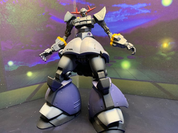 名作食玩アルティメットオペレーションのジオングをプチ改造してHGUCリックドムⅡの脚をつけてパーフェクトジオングにしてみた。元々パースのついた造形なんで常にジョジョ立ちみたいだし下半身の可動はほとんど死んでるがこの80~90年代に流行った末端肥大なバランスはこれはこれで良し #ガンプラ