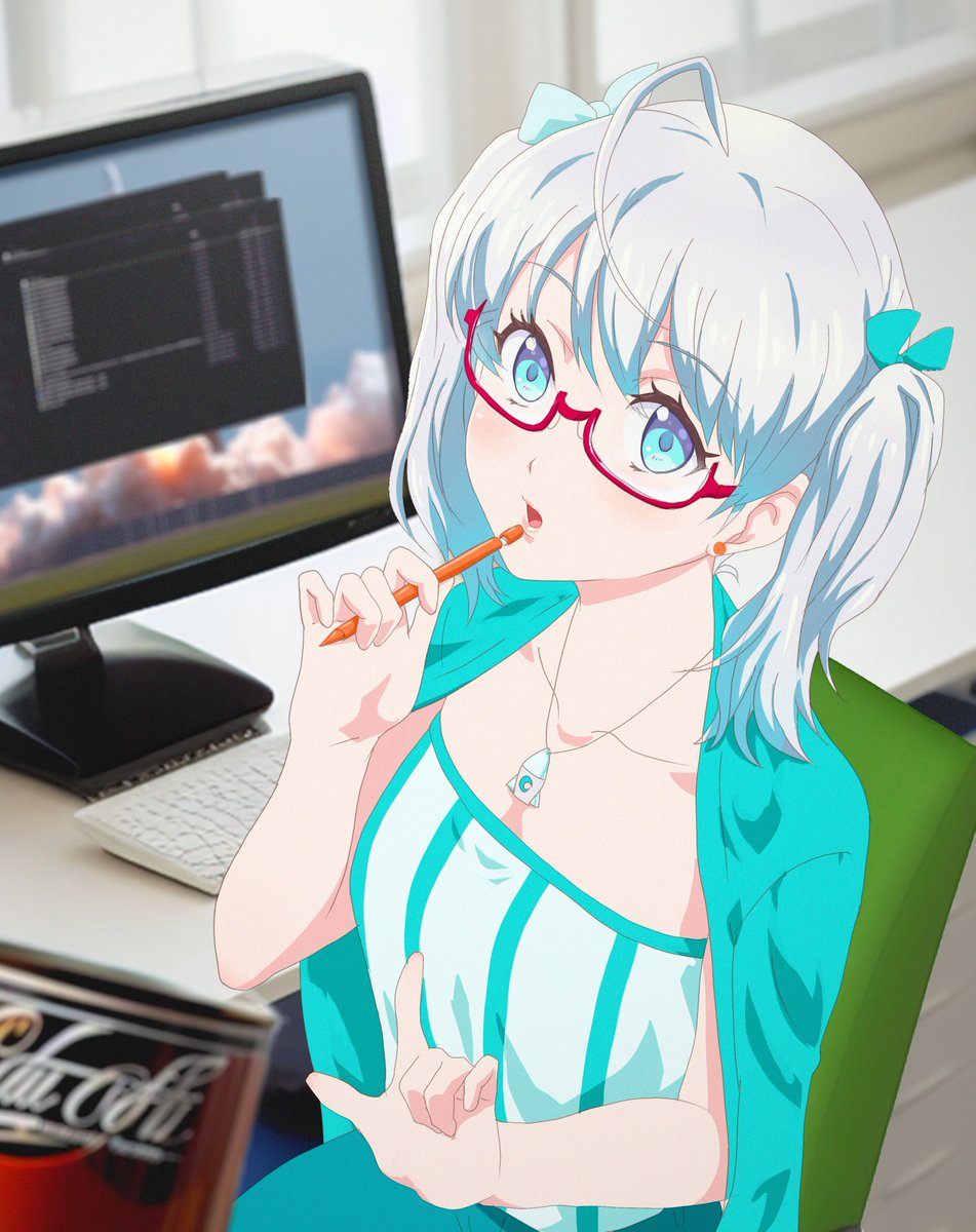 残業で宇推くりあちゃんに差し入れ持ってって、「あ、先輩ここの問題なんですけど」とか言われたい人生だった。 (BGとBOOKはAIが描きました。セルは人間が描きました。) #宇推くりあは何者なんだ #くりあファイル