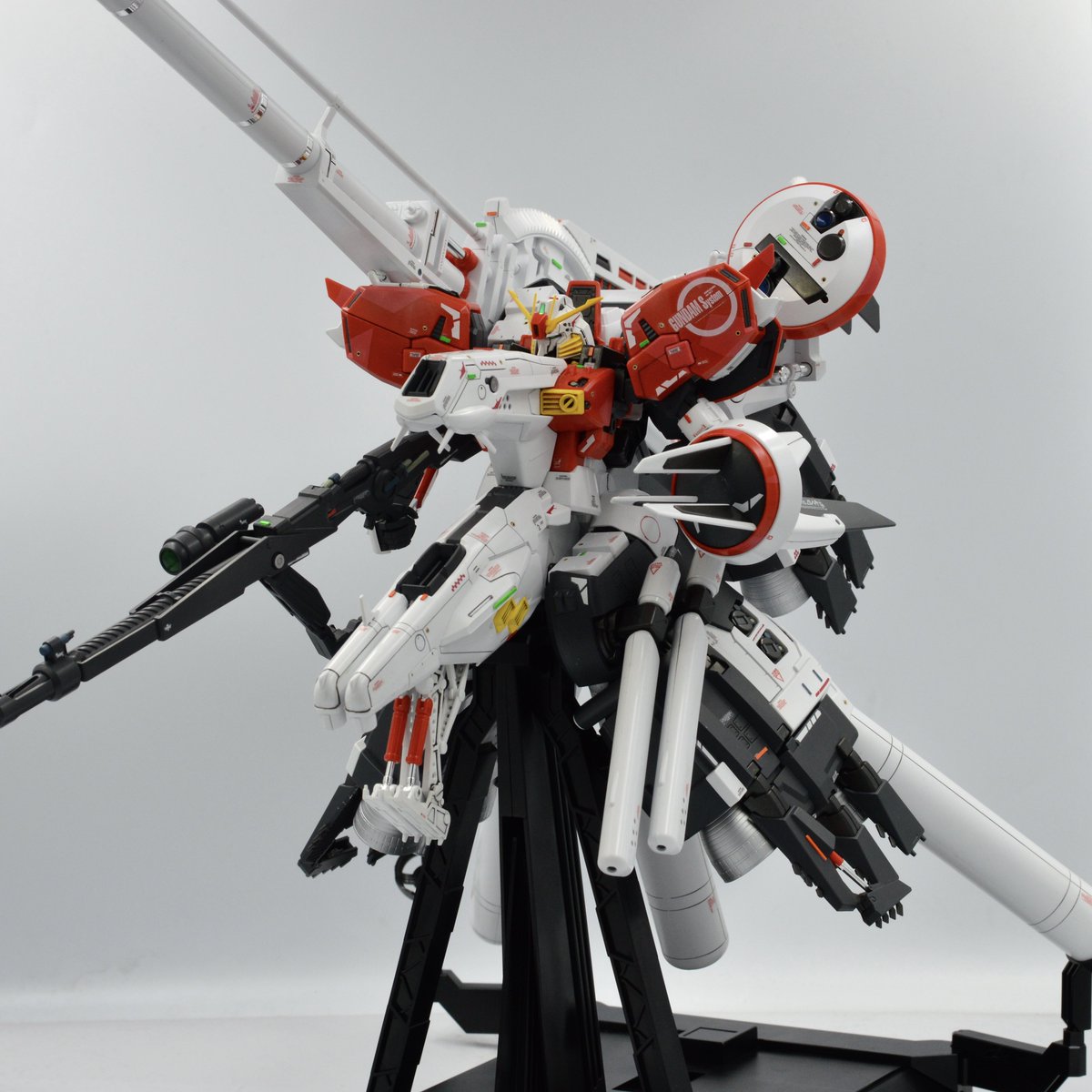 PLAN 303E DEEP STRIKER 完成しました 鮮やかなレッド、くすんだピンク、ツヤ感のあるホワイトを使用 圧倒的なボリューム スジボリ、メタルパーツ 、プラ棒チップにてディテールアップしています #ガンプラ #ガンプラの画像を貼るとRTされると聞いて