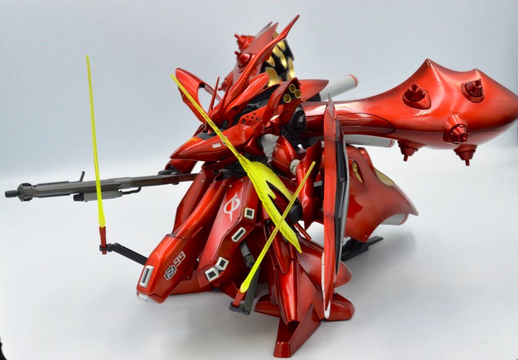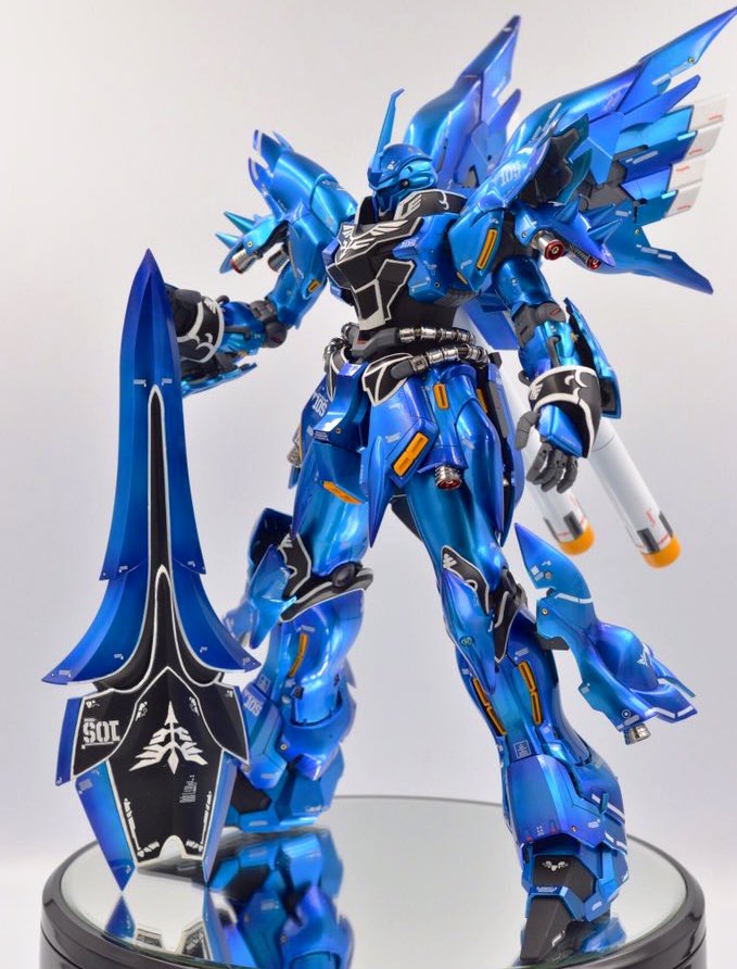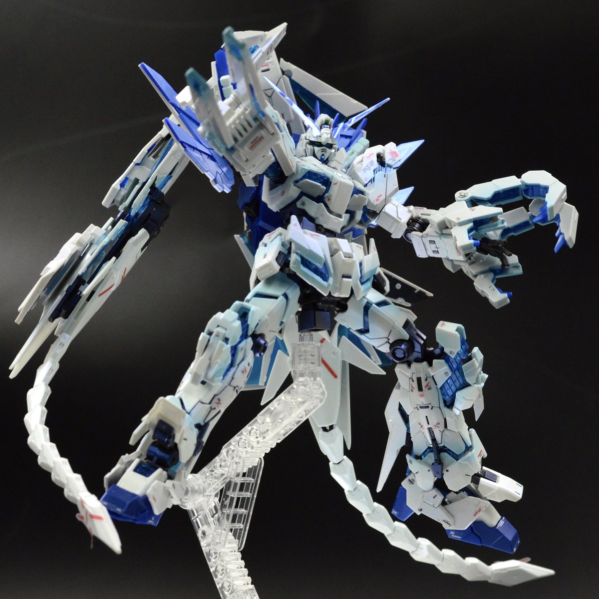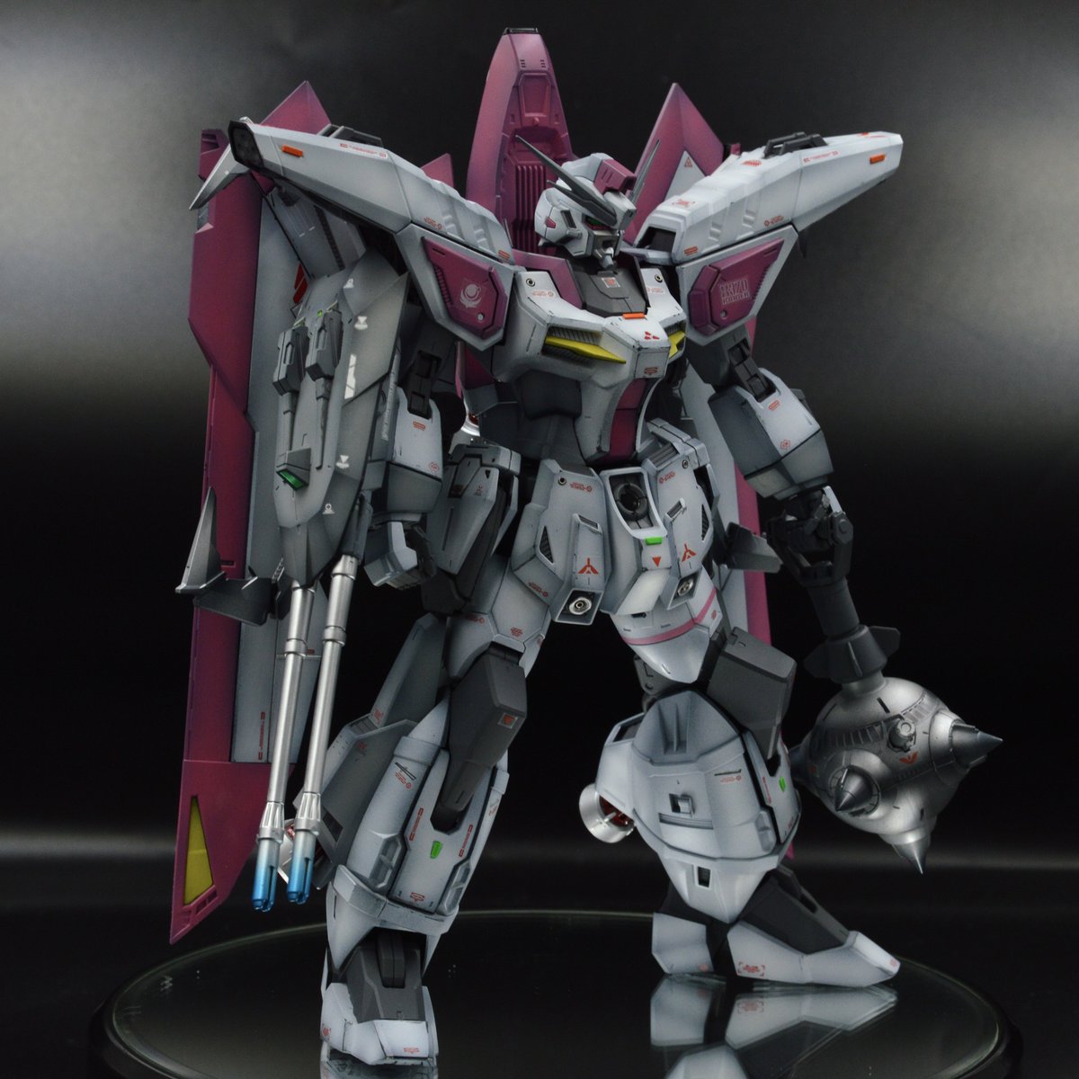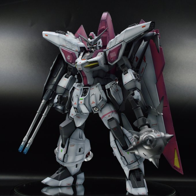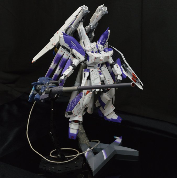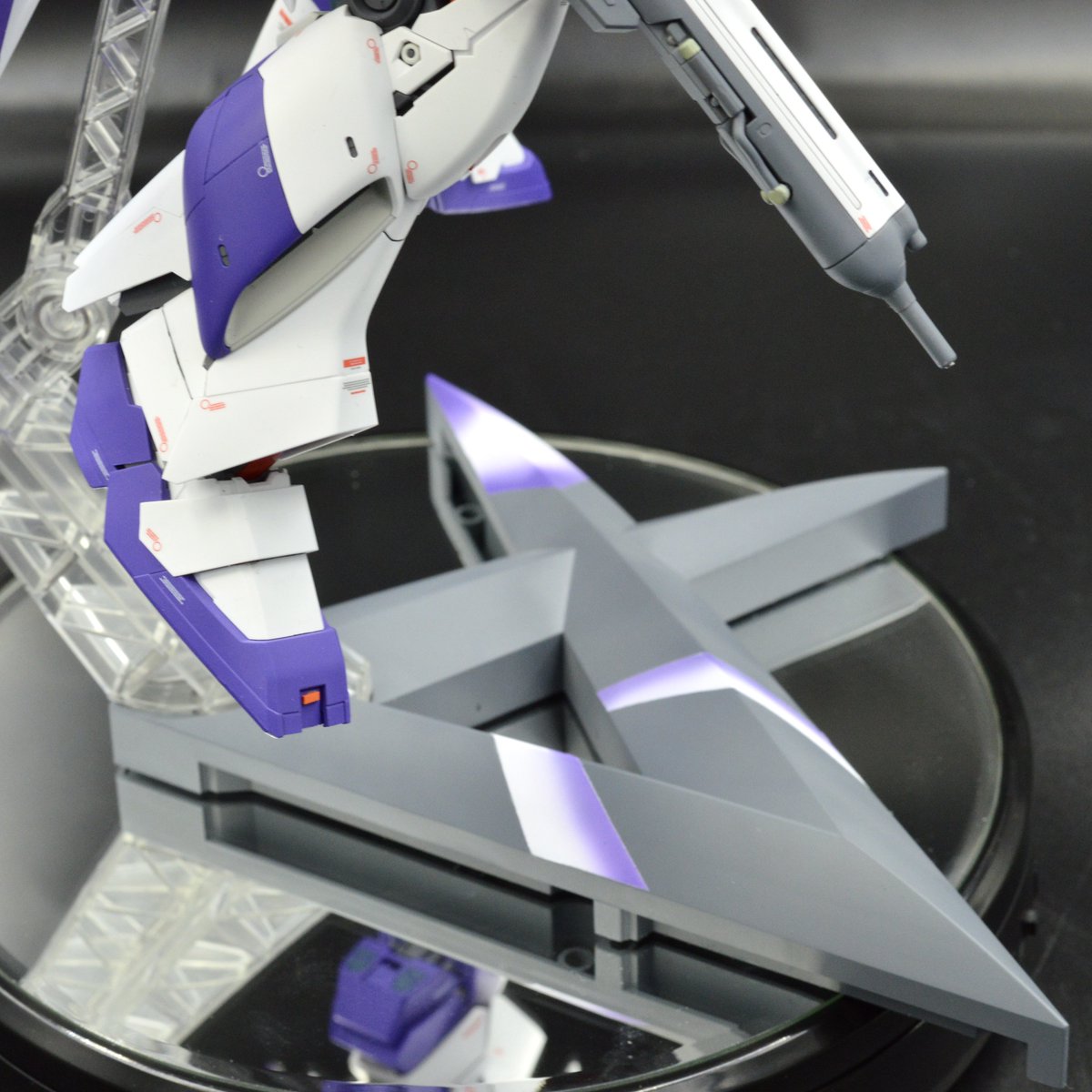 Hi-νGUNDAM project 1/3 MG ハイニューガンダム 完成 工作は最小限に、モールド掘り直し、メタルパーツ、プラ棒などで仕上げ 塗装では特徴的なパープルの色味を試行錯誤しました 土台はアクセントでホワイト×パープル #ガンプラ #ガンプラの画像を貼るとRTされると聞いて