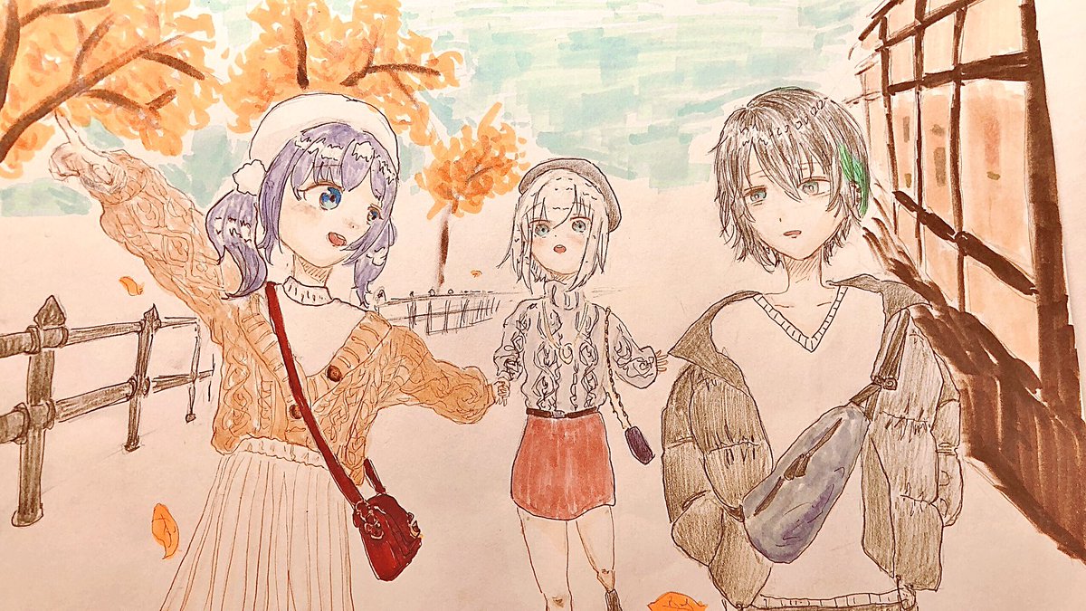 秋のお出かけぶるーず #灰画 #マル描いてちょんっ #ういはぁーと