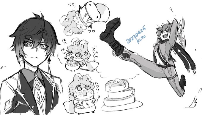 61 373 先生のなでなでにご満悦なぽよタ🦊 わん子さんのラフから鍾タル絵描かせてもらった🫶🤍おっきな双葉がかわいいよ先生〜!♡ 23/05/29 20:04