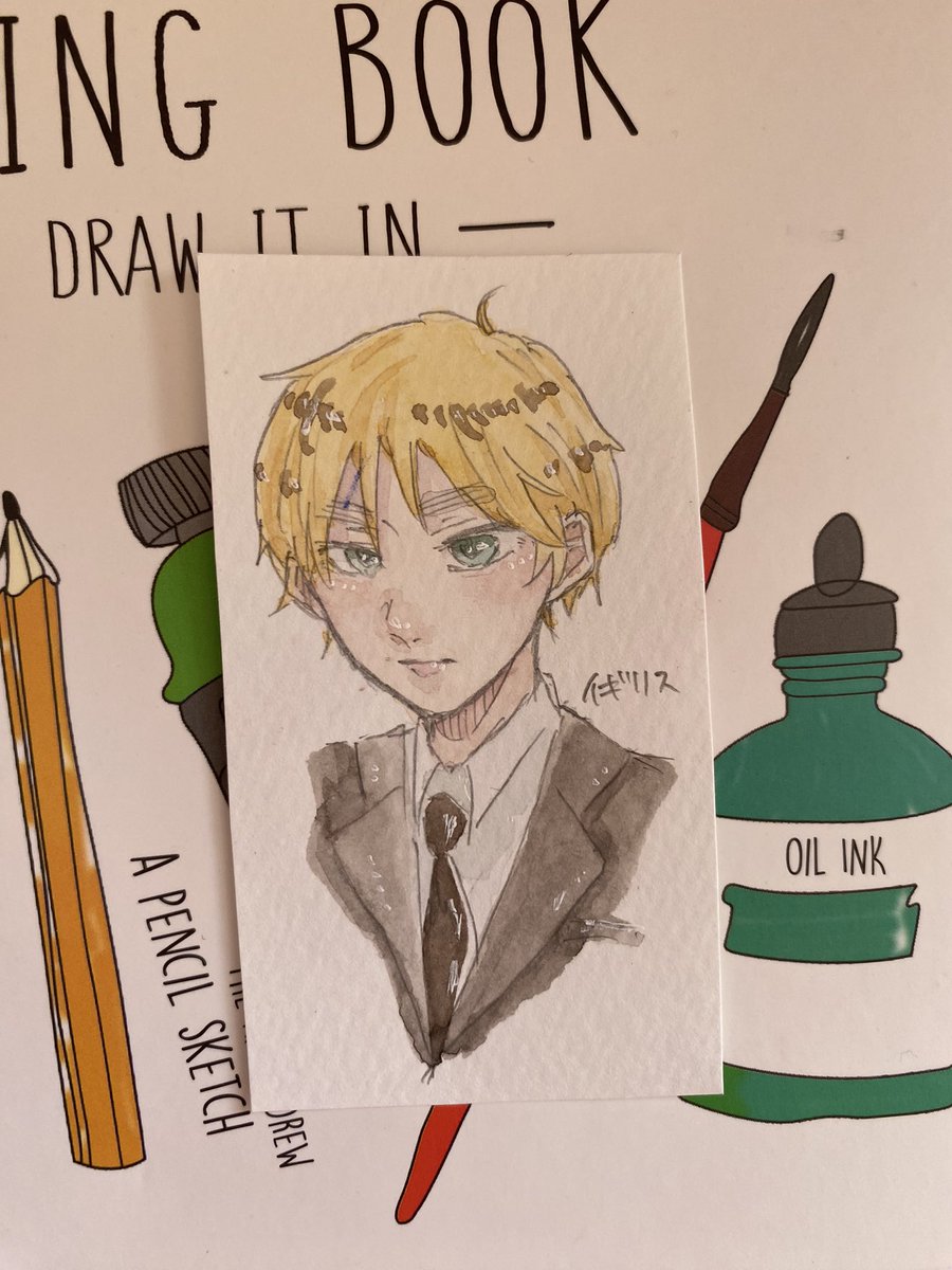 1 4 ヘタリアのイギリスちゃんです!🇬🇧 #水彩画 #アナログイラスト 23/01/22 13:05