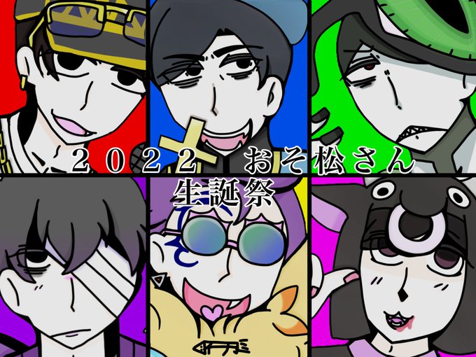 2 10 ❤️💙💚 #松野家6つ子生誕祭2022 💜💛💗 2022年も、おめでとう!の六つ子達!どう描いていいかわからなくて血迷ったよ! 22/05/24 00:03