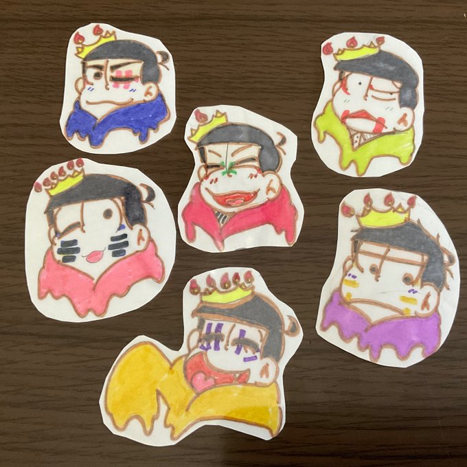 #松野家6つ子生誕祭2023 都合上、結構前に用意したもので、すまねえ… ❤️💙💚ニート達!💜💛💗 今年もおめでとう🎂のラミネートっす😅