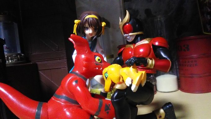 #夜のフィギュア撮影会 #ルリ撮影会 テーマ『フリー』 令和ライダーNEWWORLD 或人:ここからは、 飛羽真:俺達の、 一輝&バイス≪俺の、俺っちの…令和ライダーだ≫ twitter.com/kuuga19931/s…