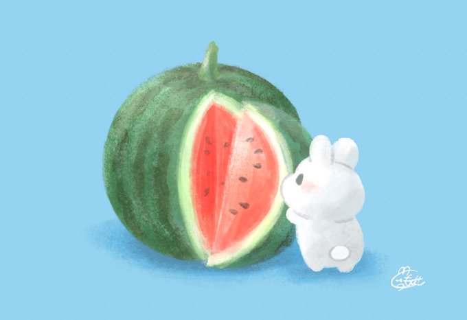 うさぎとスイカ🍉 #イラスト