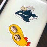 27 79 またセ●アでシールを買ってくる→適当に落書きして印刷してシールを貼る→謎のメモが出来る→たのしい(4コマ文字見えにくいかも 23/04/30 12:31