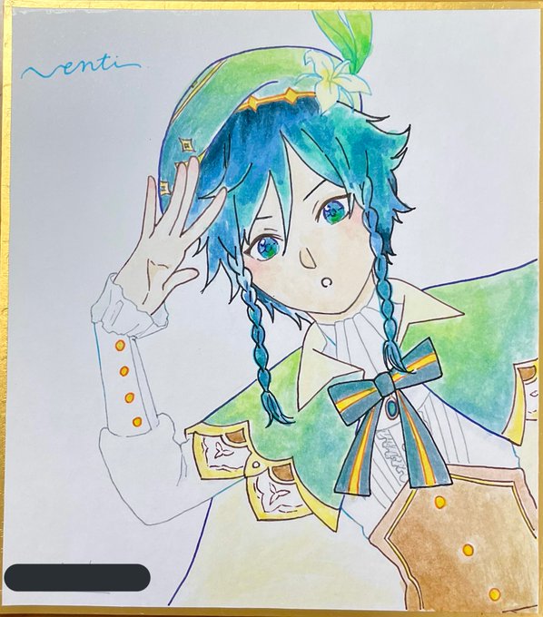 0 1 これはお友達にプレゼントした水彩画のウェンティ(色紙) #原神イラスト 21/06/25 15:18