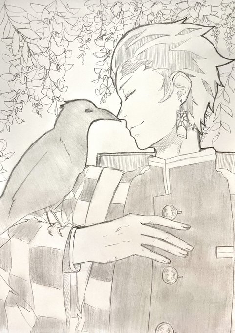 #竈門炭治郎誕生祭2021 #竈門炭治郎生誕祭2021 #アナログ画 背景は雑だけど藤の花のつもりです🙃