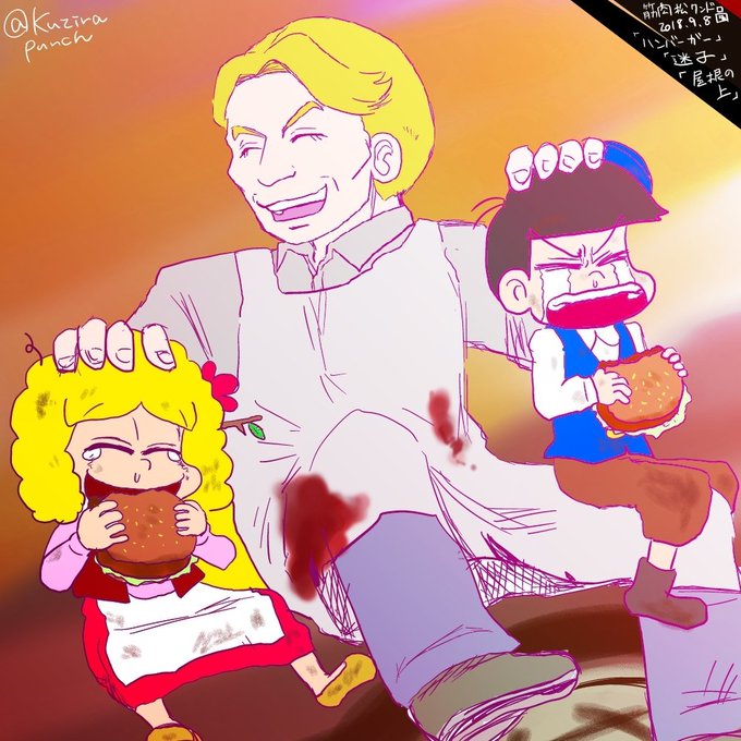 7 22 #筋肉松版創作60分一本勝負 お題「ハンバーガー」「屋根の上」「迷子」で増援します! マイコマツもいるよ! 18/09/13 14:52