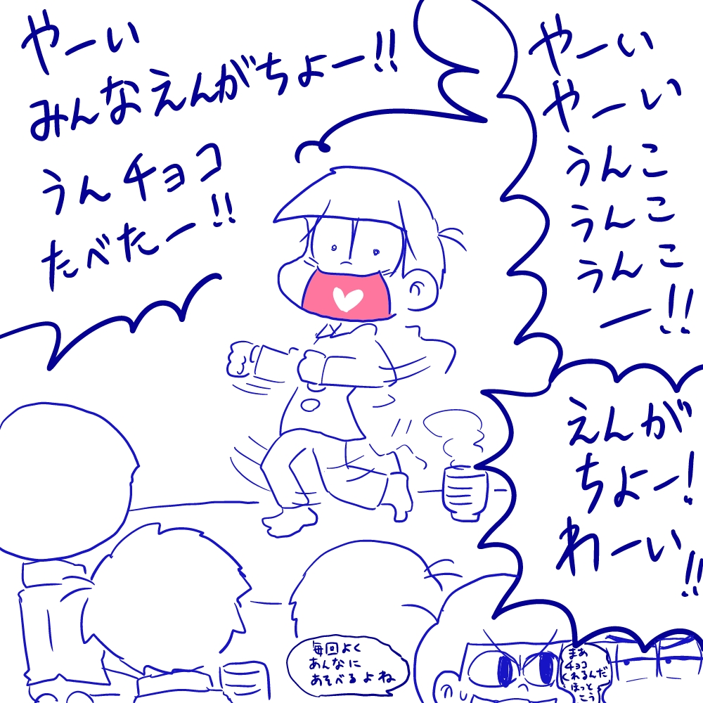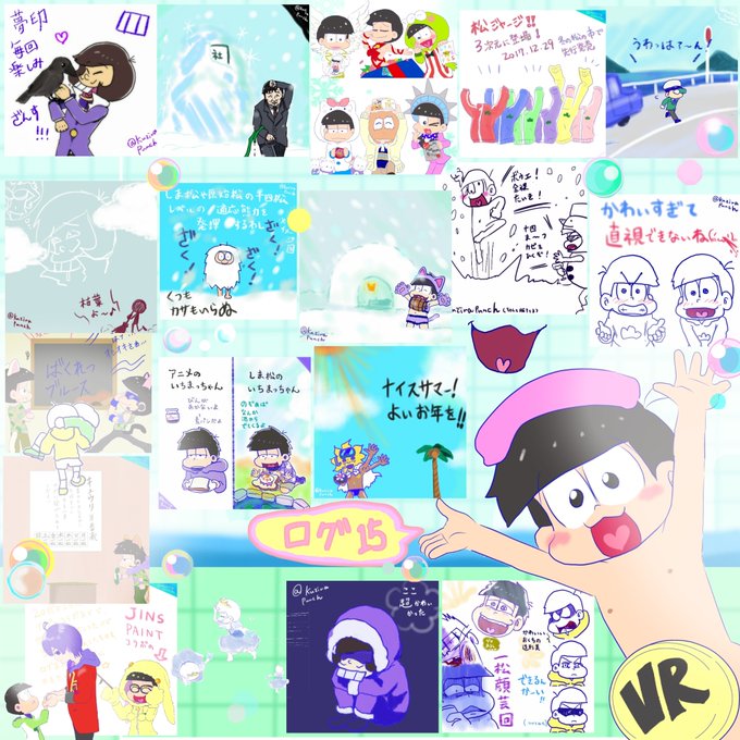 一松ワールド2019 | マッスルくじらパンチ オフ友の年賀状に描きました。 ぬるぬる大合唱。 pixiv.net/member_illust.…